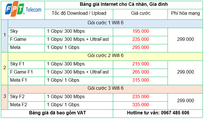 1. Các gói cước Internet FPT cá nhân, hộ gia đình